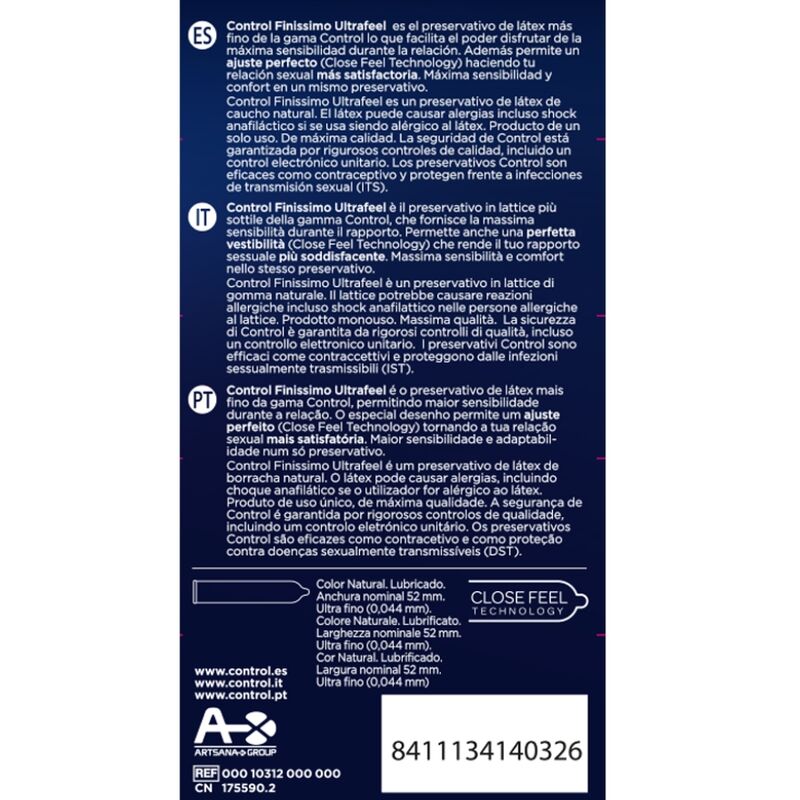 The Sensitivity range is the finest range of Control. Designed to provide greater sensitivity during intercourse. Its lower thickness allows increasing sensitivity while adapting perfectly and with total comfort.