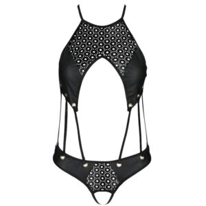 Body Tasmina is a lingerie designed for women who like to experiment with their wardrobe. Model made of black leather with decorative straps. And the beautiful openwork decorations give a unique and sophisticated character to the set.