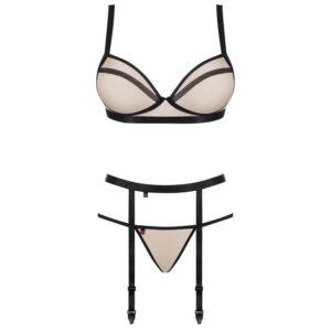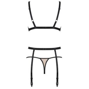 - Set includes bra, thong, garter belt