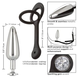 Blast off to a universe of personalized pleasure with the Star Fucker Slim Plug. A stretchy, silicone dual enhancer is paired with a sleek, seamless metal probe for versatile support, enhancement, and even tantalizing temperature play. The supple silicone dual enhancer was created to increase stamina, improve sensitivity and deliver superior erection support. Get playful by using the dual enhancer and metallic probe together, and dont forget they can be disassembled for easy cleaning. The flexible probe is made from a smooth, seamless aluminum alloy that retains heat or cold for a one-of-a-kind temperature play experience. While you expand your horizons with the sleek and slim plug, use the sparkling gem adorned base for steamy stimulation, effortless insertion and gentle removal. The view gets even better from behind with the sparkling gem base.